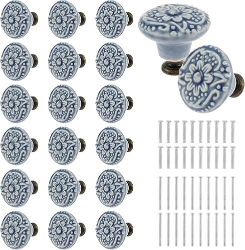 Set di 20 bottoni in ceramica vintage per cassetti, decorativi con viti, multiuso, per porte e treni, per la scrittura (blu)