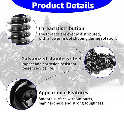 60 viti per legno, colore nero, M5 x 25 mm, viti a testa bombata nere, zincate, a testa piatta, autofilettanti con disco per pannelli acustici 304, in acciaio inox