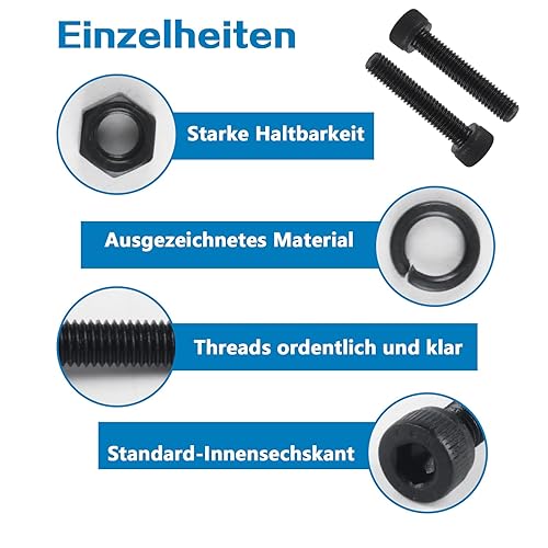 Set di 641 viti M3, dadi filettati e rondelle, viti a testa cilindrica con viti a esagono incassato, set di viti per macchine, colore nero, con chiave inglese