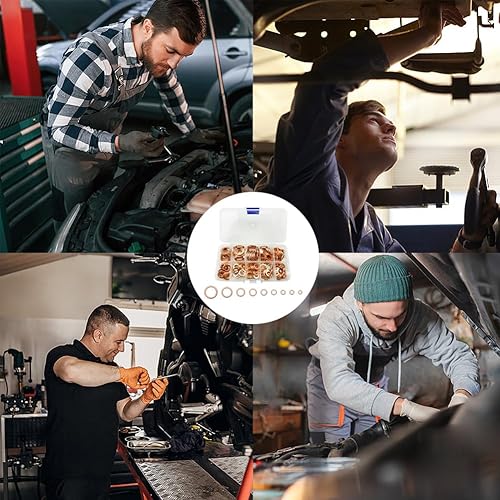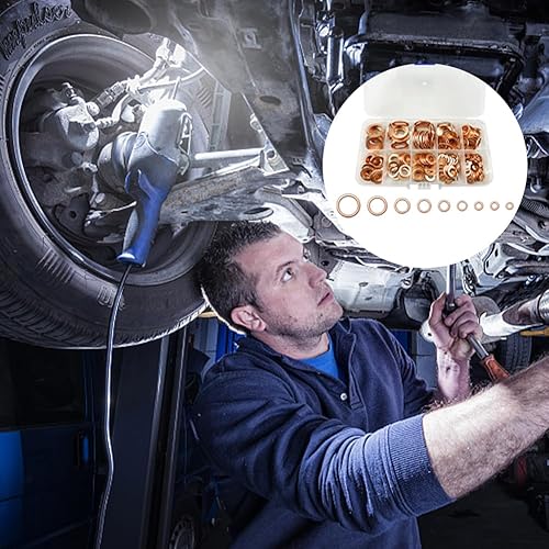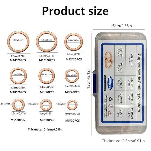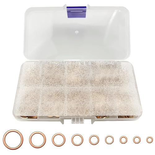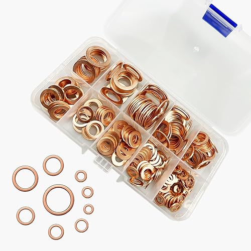 200pcs Rondella Rame Guarnizione Scarico Assortimento Kit, Rame Rondelle Metallo con Scatola, Rondelle per Gonds Porte, Guarnizione Rondella Piatta, per la sigillatura delle viti Anelli di Tenuta