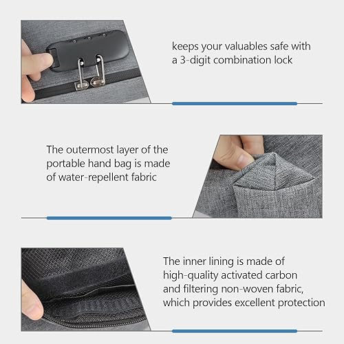 29,5 × 19,5 Borsa Antiodore, con Password, Impermeabile e Antiodore Borsa Portaoggetti, Borsa Portaoggetti Isolante, Adatta per Riporre Accessori e Portaoggetti da Viaggio (grigio)