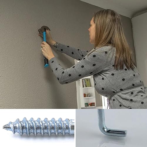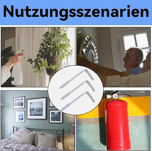 Elkuaie 100 ganci a vite, ganci a forma di L, viti, ganci ad angolo retto, gancio a vite in acciaio al carbonio, gancio ad angolo retto a forma di L, gancio a vite zincato blu