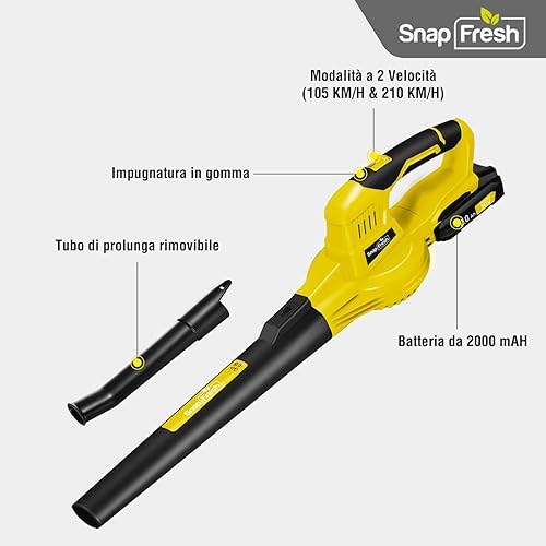 SnapFresh Soffiatore a Batteria 20V Soffiatore Elettrico Parkside Soffiatore per Foglie con Batteria e Caricabatterie 210 km/h 240m³/h / 2 Modalità /1,2kg per Foglie/Prato/Auto/Polvere (Giallo)