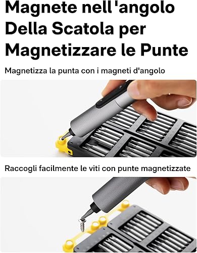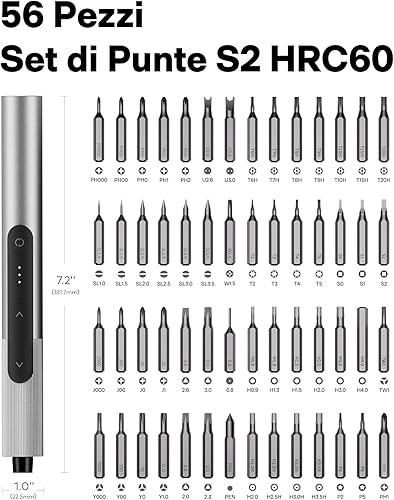 HOTO SNAPBLOQ™ S-A01 Set di Cacciaviti di Precisione Master 3.7V, 56PCS, 3 Coppie, Mini Cacciavite Elettrico, 250RPM, LED Luminoso, per elettronica, telefoni, laptop e progetti fai-da-te.