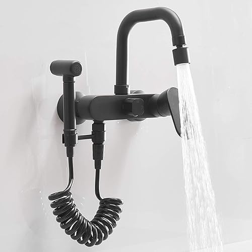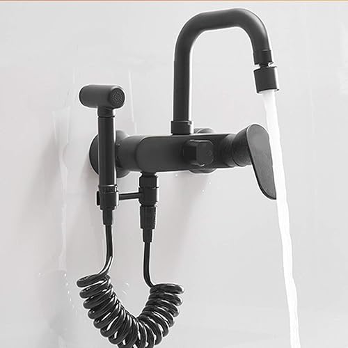 rubinetto cucina a muro Rotazione a 360 ° a parete Acqua per lavello a parete d'acqua possono essere commutate liberamente Tutto rame Con pistola spruzzo pressione-placcatura