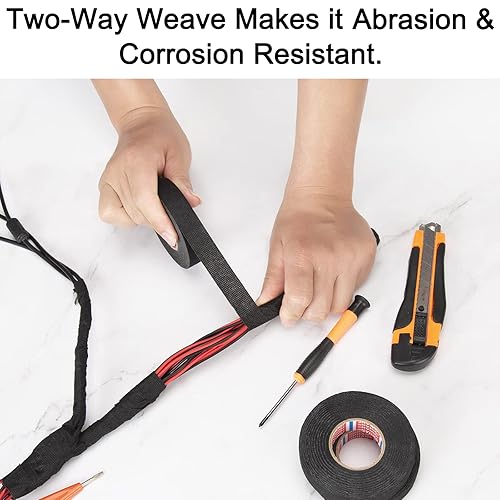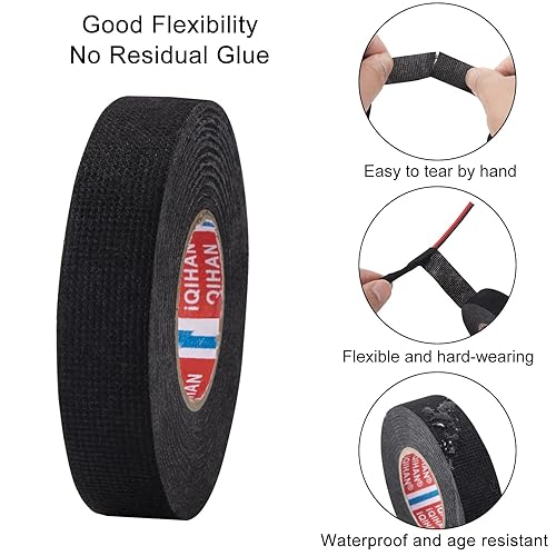 Nastro Isolante in Tessuto, 4 Rotoli Nastro in Tessuto Industriale Elettrico, Resistente Alle Alte Temperature Ridurre la Rumorosità per Cablaggi Riparazioni Automobile, 19mm x 15m Nero