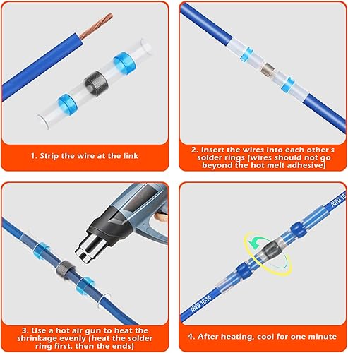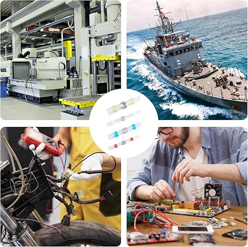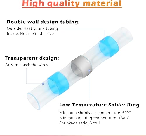 200 Pezzi Connettore Elettrico, Connettori di Testa Filo Saldato, Connettori Termoretraibili Saldanti, 4 Taglie 26-10 AWG, Wire Terminal Impermeabili per Auto Moto Marini