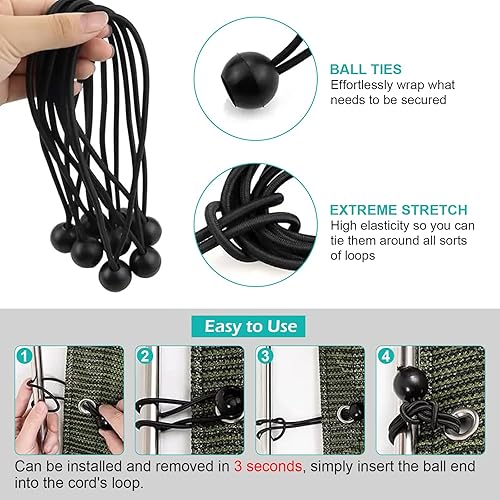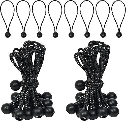 50 pezzi Corde Elastiche con Sfere Portatile Corde Elastici per Teloniper Teloni, Padiglioni, Tende, Campeggio, 25 pezzi x 20 cm+25 pezzi x 15 cm