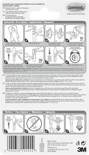 Command 16804 Gancio Metallico Punta Arrotondata, Resistente all'Acqua, L, Nichel Spazzolato, L