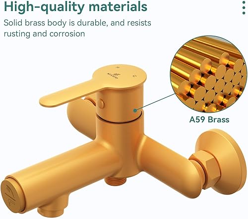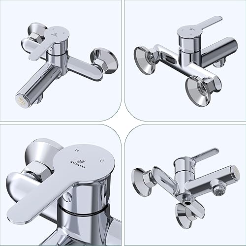 Rubinetto per vasca da bagno, Rubinetto per vasca da bagno con interruttore a pressione, Rubinetto in ottone per il montaggio a parete, Miscelatore monocomando cromato per doccia per bagno