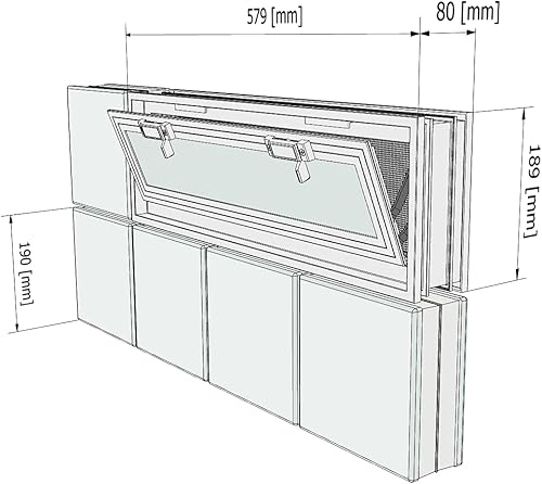 Finestra di ventilazione da inserire in una parete di vetromattoni o muratura | Dimensioni cm 57,9X19X8 | Unità di vendita 1 finestra