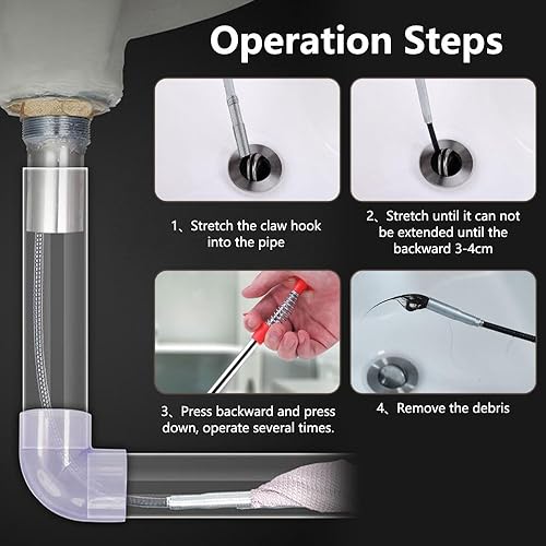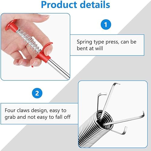3 Pezzi Sbloccatore di Tubi,60cm Sonda Sturatubi Lavandino,Gancio Pulizia Lavello,Strumento di Rimozione dei peli Dello Scarico,Flessibili per la Pulizia dei Tubi,Quattro Artigli,per Stura Lavello