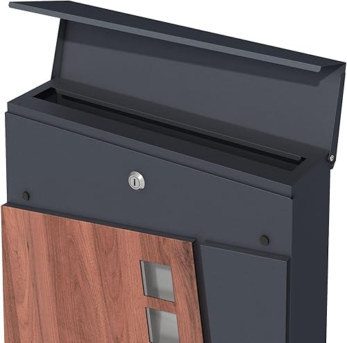 SCHARTEC® Cassetta delle lettere in legno e antracite con scomparto per giornali, moderna e grande