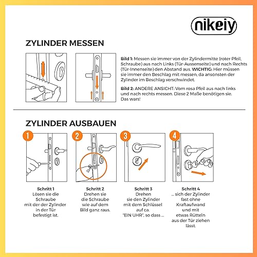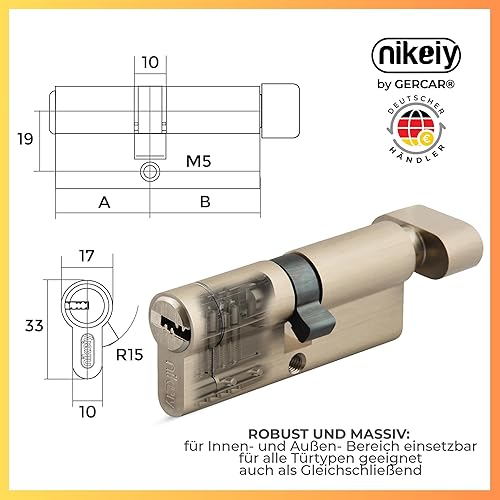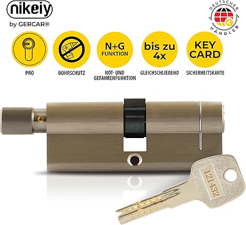 GERCAR Pro+ - Set di 2 cilindri con pomello con chiave unica, 45/45, serratura a cilindro per porta con protezione antiperforazione e 10 chiavi con scheda magnetica, 90 mm, A:45 B:45
