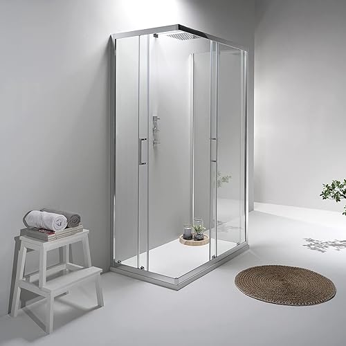 Box Doccia 3 Lati - Cabina Doccia con Porta Scorrevole, Cristallo Temperato 6mm, Anticalcare con Profilo Cromato e Chiusura Magnetica (80x80x80, Trasparente)