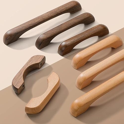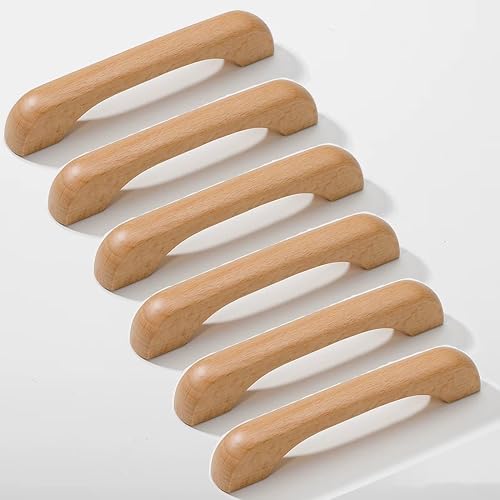 6 Pezzi Maniglie da cucina in legno, 64mm Hole Centers, Cassetto in legno Pull Kitchen Cabinet Maniglie