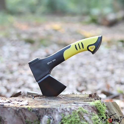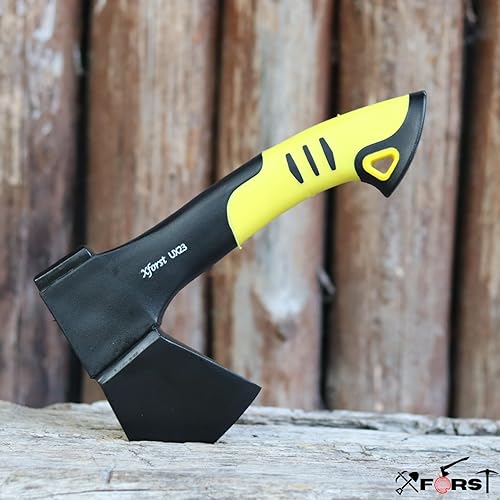 Ascia da Campeggio UX23, Accetta Outdoor con Protezione Lama e Rivestimento Antiaderente, Manico in Fibra di Vetro, Lunghezza 23 cm
