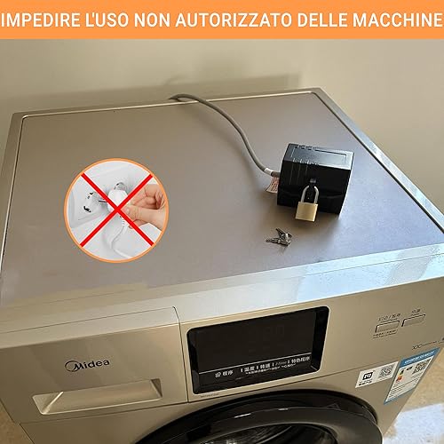 Serratura a spina, cassaforte con lucchetto, serratura a presa, ideale per lavatrice e cavo di alimentazione, spina cassaforte