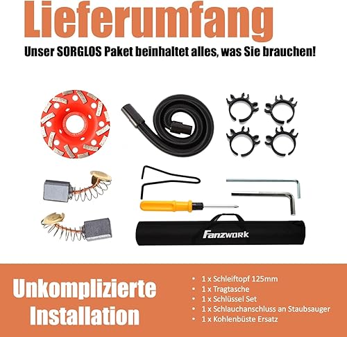 FANZWORK - Smerigliatrice per calcestruzzo, 1010 W, con asta telescopica fino a 1,20 m, con mola diamantata da 125 mm e borsa per il trasporto, regolabile in velocità, ideale per levigare