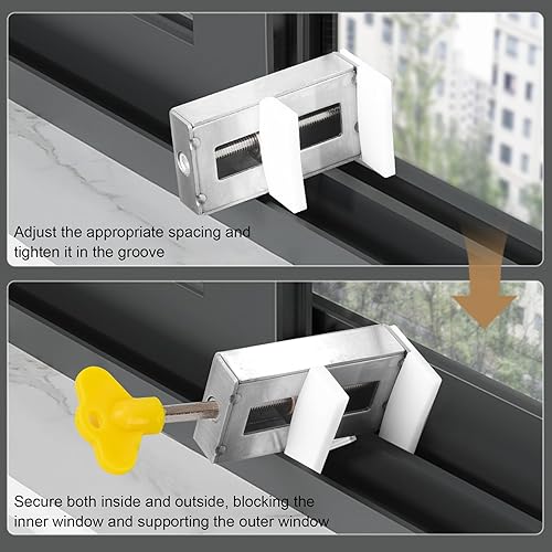 Finestra Scorrevole Serratura, Serrature per Finestre Scorrevoli con Chiave, sicurezza finestre serrature - Migliora la Sicurezza della Tua Casa per la Sicurezza Del Bambino (2pcs)