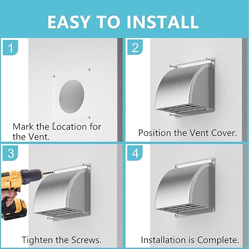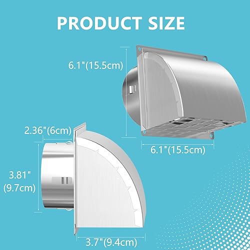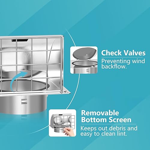 Griglia Aerazione 100mm, Griglia Aerazione Regolabile, Griglia Ventilazione, Sportello Antiriflusso Integrato, Griglia Regolabile, per asciugatrici, cucine, Ø 10 cm (15,5 * 15,5 cm), Nero
