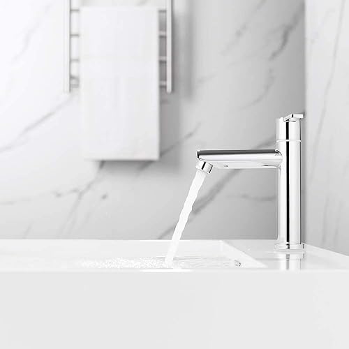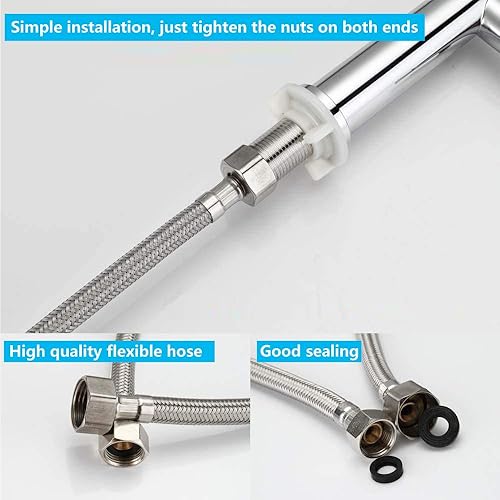 Rubinetto Bagno Lavabo Solo Acqua Fredda in Ottone, Rubinetti per Toilette per Gli Ospiti, Aeratore Rimovibile, Cartuccia in Ceramica, con Tubo di Collegamento, Nero