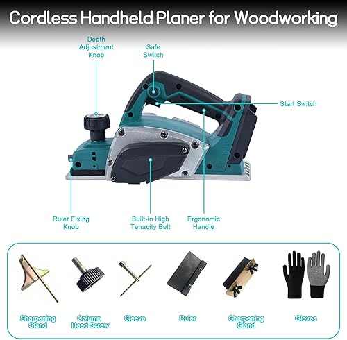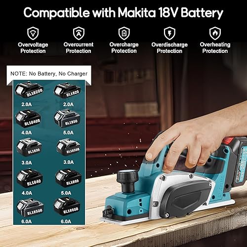 Pialla a Batteria compatibile con Ma-kita 18V Batteria, 16500RPM Pialla Elettrica per Legno a Batteria, Pialletto Senza Fili Piallatrice per Legno, Larghezza di Piallatura da 82mm e Profondità da 2mm