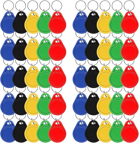 50 portachiavi scrivibili RFID di prossimità, 125 kHz, con etichetta identificativa di prossimità, per controllo accessi alle porte (multicolore)