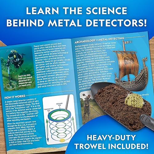 NATIONAL GEOGRAPHIC Starter Metal Detector Kit per bambini - Metal Detector per bambini con bobina e cazzuola impermeabile da 18,8 cm, rilevatore di oro leggero, rilevatore di metalli da spiaggia,