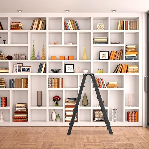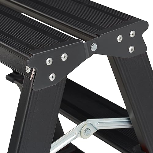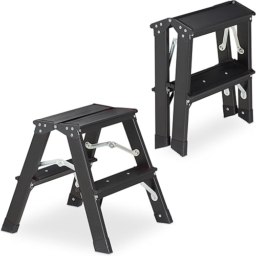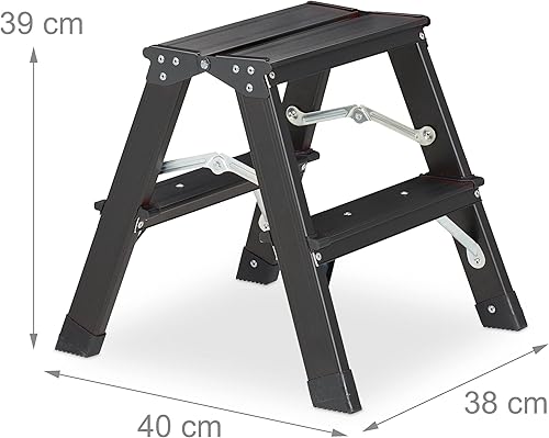 Relaxdays Scala in Alluminio, 2 Gradini, Pieghevole, Carico Fino 120 kg, Scaletta Bilaterale, Rialzo 39x38x40 cm, Nera