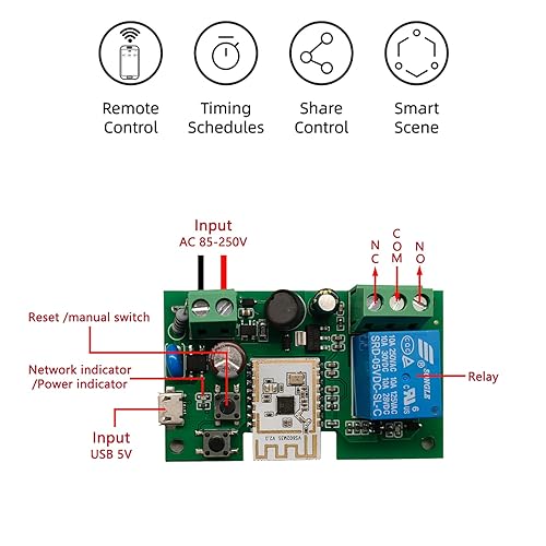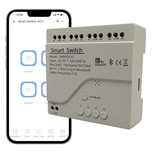 Interruttore a 4 canale Smart Wifi Interruttore momentaneo/a scatto, Casa intelligente fai-da-te, Supporto eWeLink APP Controllo Bluetooth AC/DC7-32V, Compatibile con Alexa Google Home