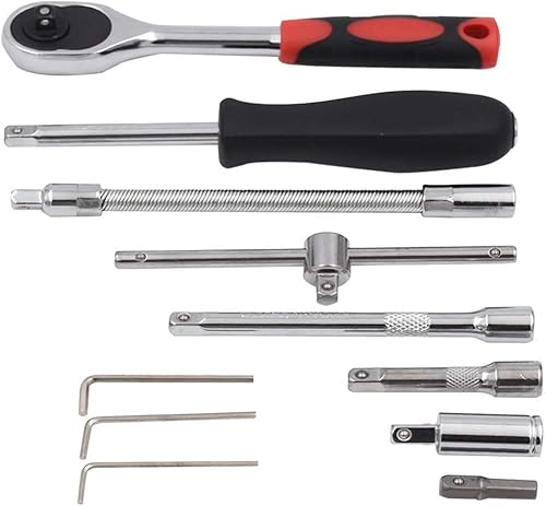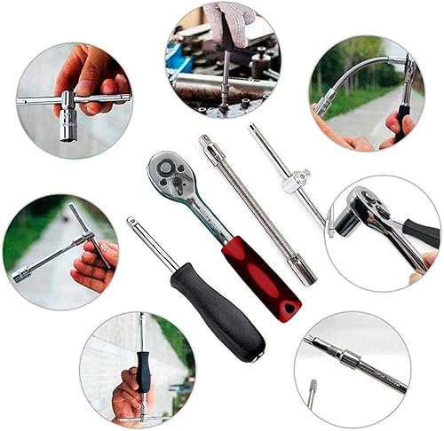 Set Chiavi a Bussola con Cricchetto 46 Pezzi Attacco Cacciavite Esagonale Chiave In Valigetta di Plastica Accessori