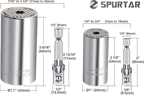 Spurtar 7mm-19mm 11-32mm Chiave Universale con Adattatore, Strumento di Riparazione Presa Universale Chiave Multifunzione Idee Regalo Uomo