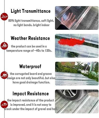 Lamiere Ondulate in FRP,Pannelli da Tetto Trasparente,Lamiere Ondulate in FRP,Antipioggia Pensilina Tettoia da 1.2mm,Copertura Tettoia Isolante,Pannelli da Tetto(Color:12pcs,Size:0.9*1.4m/35*55in)