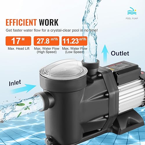 VEVOR per Piscina Fuori Terra, 220 V a 240 V a Doppia Velocità 1450/2860 giri/min 1800 W 33000 L/H max. Potente, Per Piscina a Risparmio Energetico per Piscina Fuori Terra