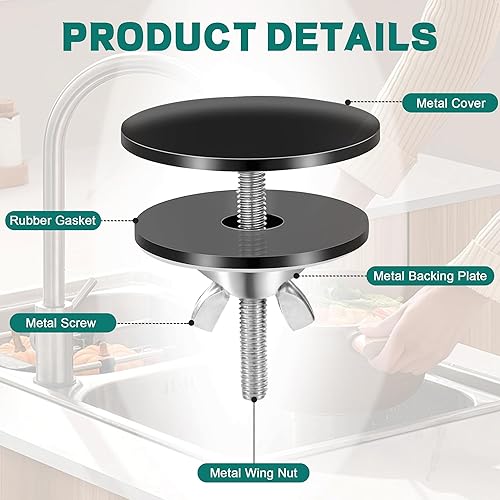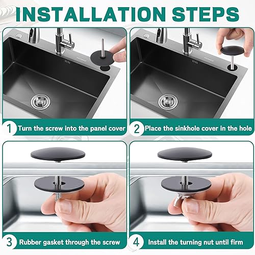 Acciaio Inossidabile Tappo Foro Rubinetto Lavello 2 Pezzi Copriforo Lavandino per Lavello da Cucina e da Bagno 5cm Coperchio Foro Del Rubinetto Prova di Perdite, Nero