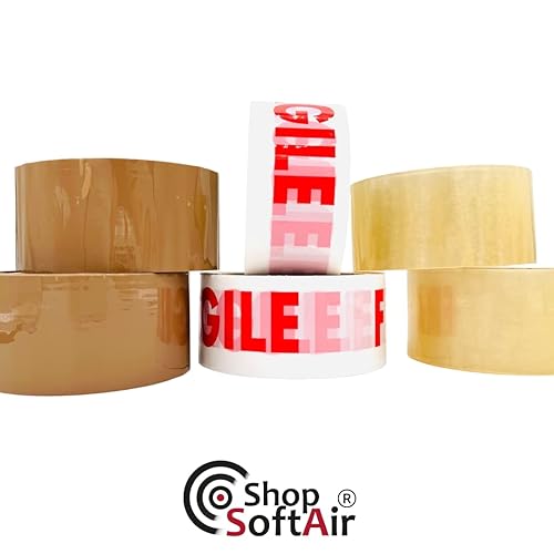 Shop SoftAir® Nastro Adesivo Rotoli da Imballaggio 50x66m Metri Marrone Trasparente Fragile per Dispenser Pistola in Kit a Scelta (N. 1 Dispenser Pistola da Imballaggio)