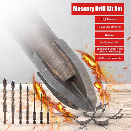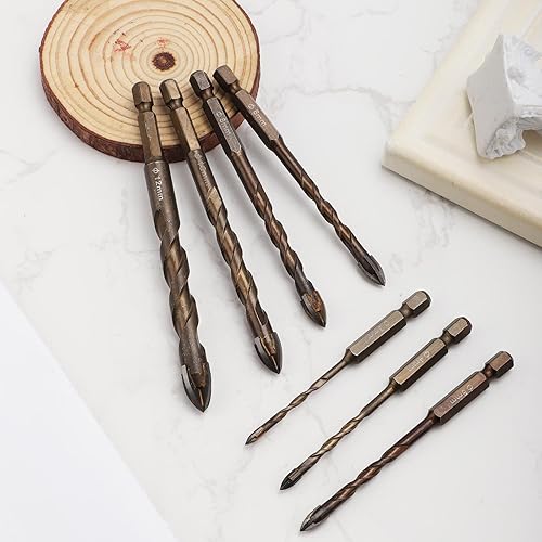 7pz Nuova Punta da Trapano Eccentrica a Quattro Taglienti, Set di Punte da Trapano Eccentriche Seghettate a Quattro Taglienti ad Alta Resistenza per Calcestruzzo Vetro (3/4/5/6/8/10/12mm)