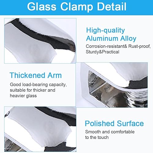 Morsetto di Vetro, Supporto Vetro Regolabile, Vetro Regolabile Clip, 4PCS Staffa in vetro regolabile Staffe mensole vetro Supporto Mensola Vetro Reggimensola Vetro per Vetro Spesso 6-8 mm