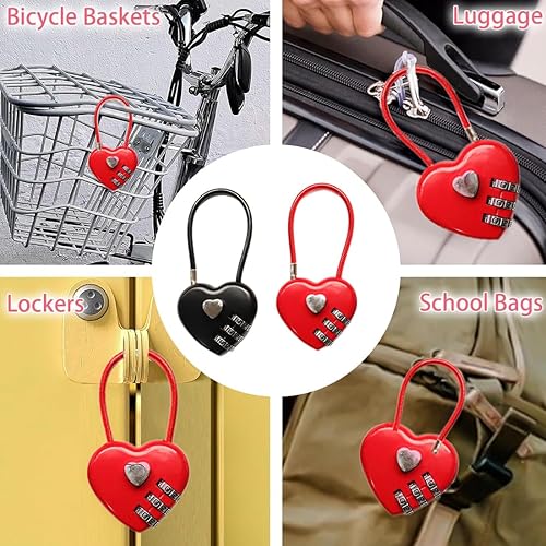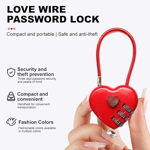 Lucchetti a combinazione 2 pezzi Lucchetti a combinazione a forma di cuore, graziosi lucchetti a combinazione impermeabili in filo di acciaio a forma di cuore per borse da viaggio