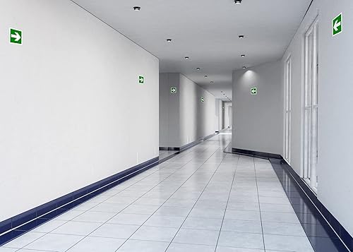 ADESIVI FRECCE USCITA EMERGENZA 6 pz. - da 10 cm - Frecce Guida verso Uscita di Sicurezza, orientabili in ogni direzione, in PVC morbido, Impermeabili, anti UV, mis. 10x10 cm
