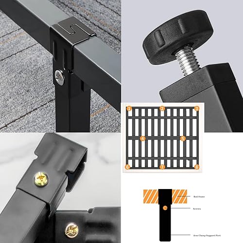 Piedi per Rete a Doghe,Regolabili,4 Pezzi Senza foratura Letto Per Rete a Doghe Gambe Letto Universali,Metallo Gambe di Ricambio per reti da Letto Supporto Piedi (17cm(6.6in),Black,3x4cm)