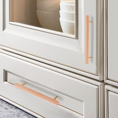 SYZOW 6 Pezzi mobili da cucina Maniglie per mobili in legno -maniglie a T per mobili Maniglie Cassetti Ottone Maniglie per Mobili da centro del foro 224mm (Legno di noce)
