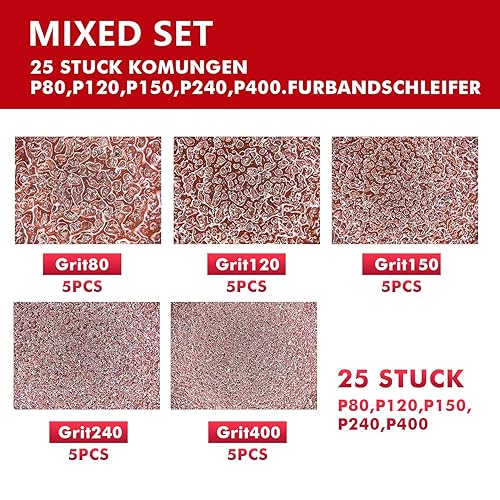 GZKTY Nastri abrasivi, 75 x 533 mm, set da 25 pezzi, grana (P80 x 5, P120 x 5, P150 x 5, P240 x 5, P320 x 5), per levigatrice a nastro