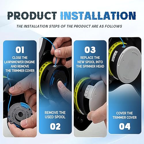 Bobine Filo Tagliabordi compatibile con Ryobi RAC124 AC14RL3A, bobina di filo di ricambio per Ryobi One+ 18 V, 24 V, 40 V, Ø 1,65 mm 3,4 m,con copertura per bobina AC14HCA(6 bobine+2 tappo)