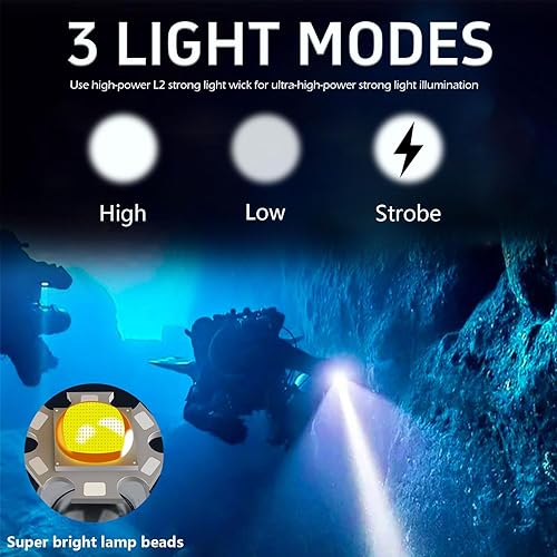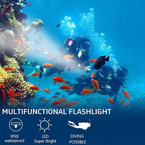 Immersione Torcia Elettrica Professionale Luminosa Impermeabile Sicurezza Subacquea Lampada 3 Modalità Torcia subacquea per Immersioni Nuoto Escursioni Pesca (1 Pack)