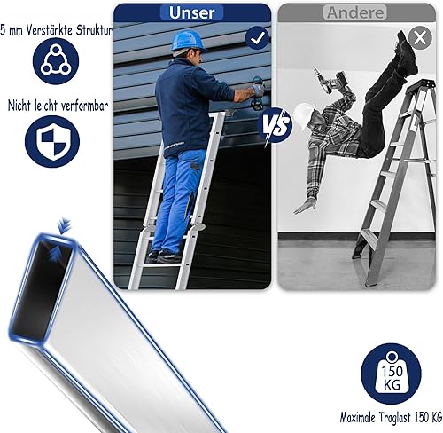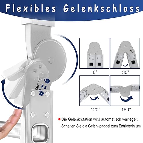 Scala multiuso 6 in 1, in alluminio, 470 cm, con piattaforma fino a 150 kg, portata 4 x 4 gradini, colore: argento
