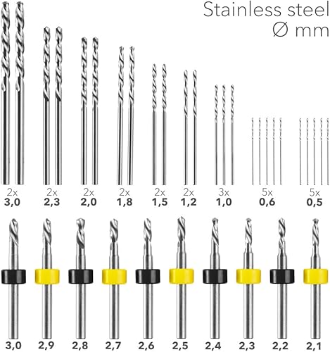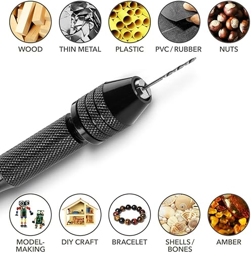 TROTEC - Set trapano a mano 37 pezzi mini trapano - utensile manuale per modellismo, bricolage e fai da te