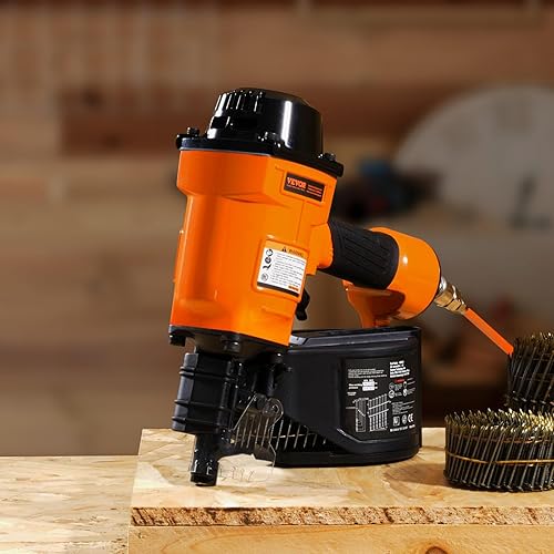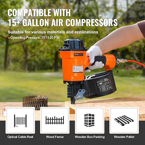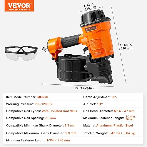 VEVOR Chiodatrice Pneumatica a Spirale, 45-70 mm, Chiodatrice Pneumatica a Spirale 15°, MCN70, 70-120 PSI, Testa del Chiodo Φ5,5 - Φ7 mm, Pistola Sparachiodi per Rivestimenti Faidate Legno Recinzioni