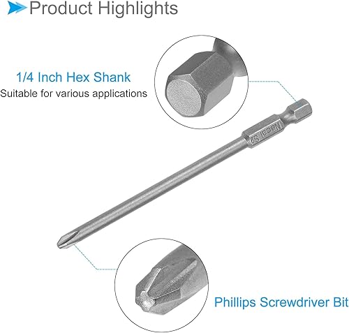 Croce Croce Avvitatore Punte, PH2 100mm Lungo 1/4' Esagonale Gambo, S2 magnetici Croce Trapano Punta Potenza Impatto Guida), 8-Pezzi